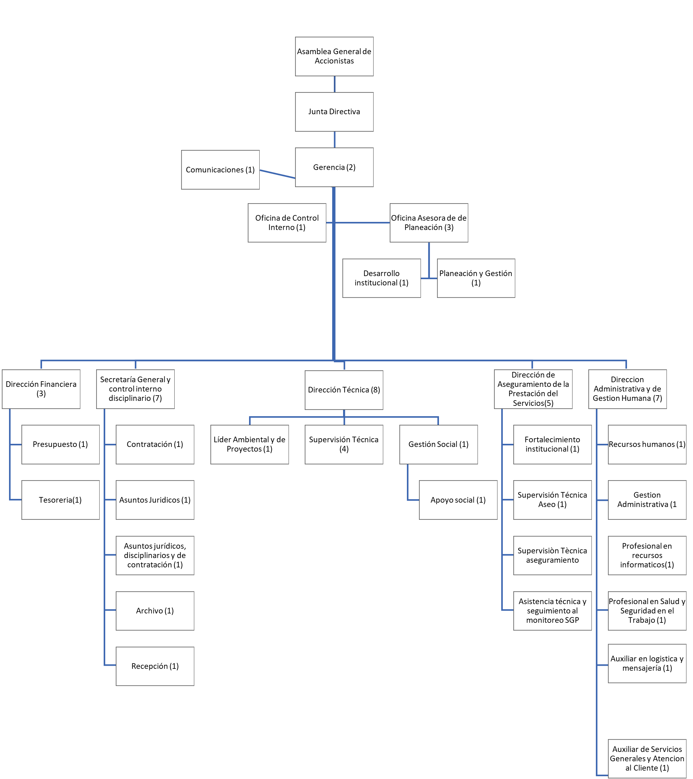 Estructura organizacional de la Empresa Aguas del Cesar S.A. E.S.P., de acuerdo a los niveles de autoridad y responsabilidad: